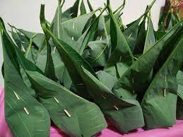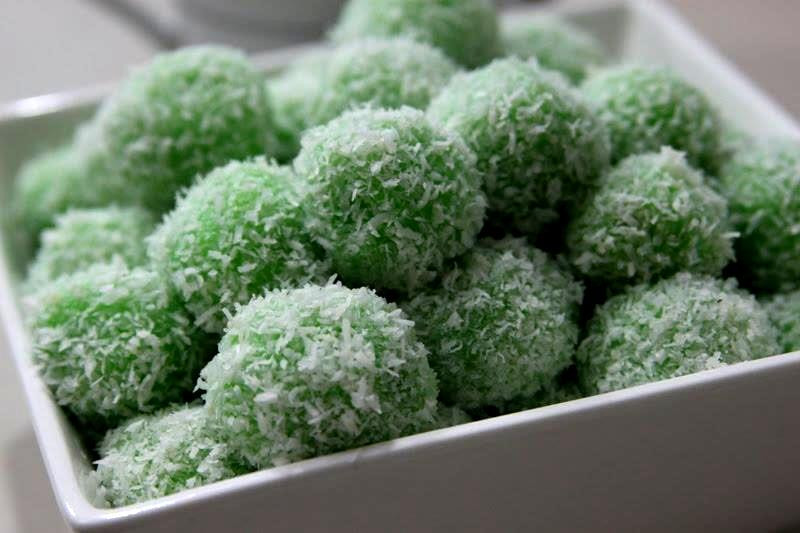 : Bola tradisional Asia Tenggara berwarna hijau kek beras yang diisi dengan